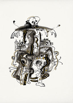 SARAMAGO HOMENAJE El carcoma II Serigrafía, tinta china negra,dorada y/o plateada sobre papel 70 x 50 cm