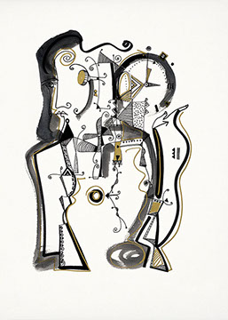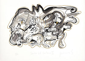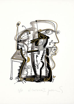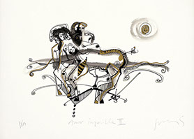 SARAMAGO HOMENAJE Amor imposible II Serigrafía, tinta china negra,dorada y/o plateada sobre papel 70 x 50 cm