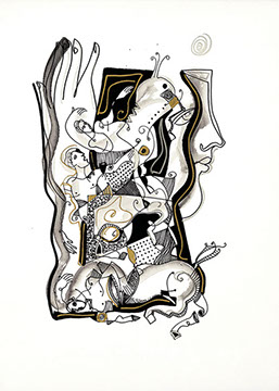 SARAMAGO HOMENAJE Atrapado II Serigrafía, tinta china negra,dorada y/o plateada sobre papel 70 x 50 cm
