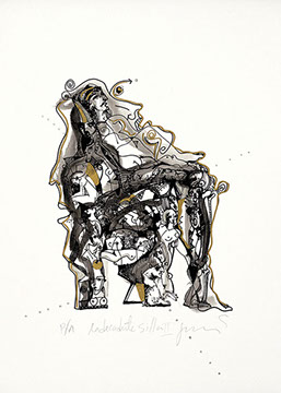 SARAMAGO HOMENAJE La decadente silla II Serigrafía, tinta china negra,dorada y/o plateada sobre papel 70 x 50 cm