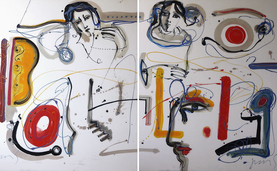 TRANSMUTACIÓN Entre líneas la belleza I y II (díptico) Mixta sobre madera 91 x 214 cm
