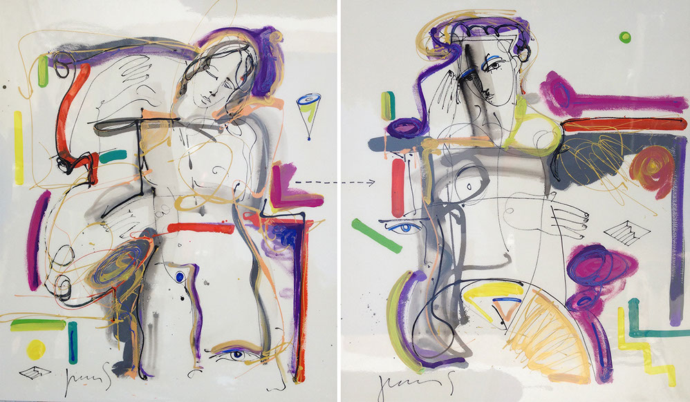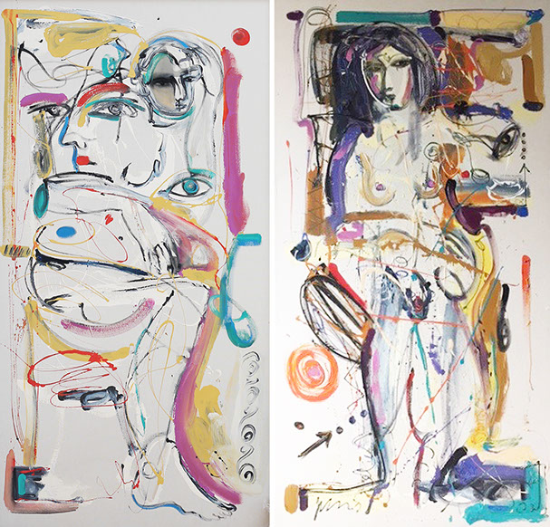 Nada secreto es su afán por decir, por contar; construye retóricas plásticas que recientemente tienden a lo amorfo. Lo abstracto se le asoma en color que expresa su pasión sin narrar. La pintura le guía ahora lejos de los personajes que hace y que le hacen.