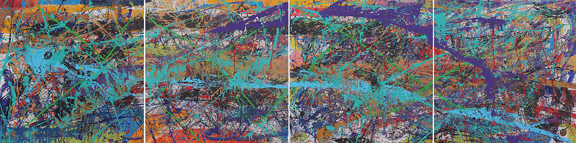 TRANSMUTACIÓN Explosión I, II, III y IV (Políptico) Acrílico sobre tela 100 x 400 cm