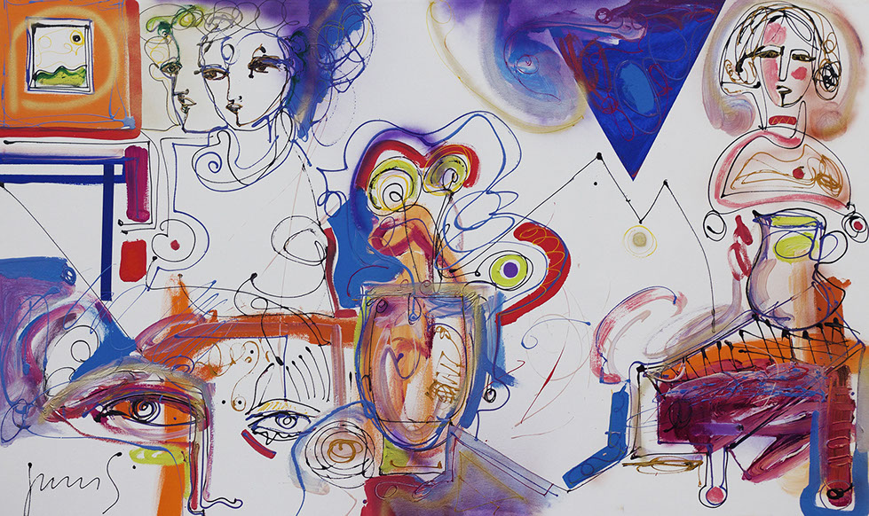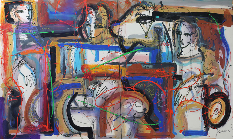 HISTORIAS PINTADAS Convivio en el salón Acrílico sobre tela 120 x 200 cm