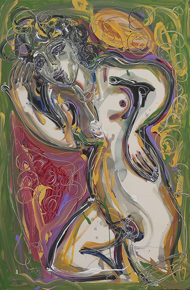 Fiel a la visualidad retiniana, al impacto estético de los signos, Juan Sebastián nos invita a experimentar el delirio a partir de la obra de arte.