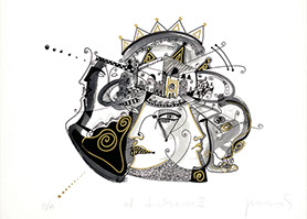 SARAMAGO HOMENAJE Las cosas II Serigrafía, tinta china negra,dorada y/o plateada sobre papel 70 x 50 cm