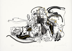 SARAMAGO HOMENAJE El coche II Serigrafía, tinta china negra,dorada y/o plateada sobre papel 70 x 50 cm