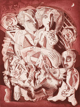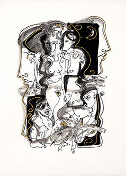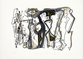 SARAMAGO HOMENAJE Amor imposible II Serigrafía, tinta china negra,dorada y/o plateada sobre papel 70 x 50 cm