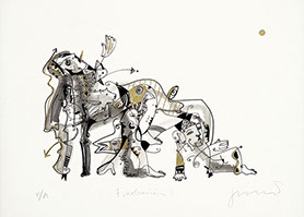 SARAMAGO HOMENAJE La muerte del Centauro II Serigrafía, tinta china negra,dorada y/o plateada sobre papel 70 x 50 cm