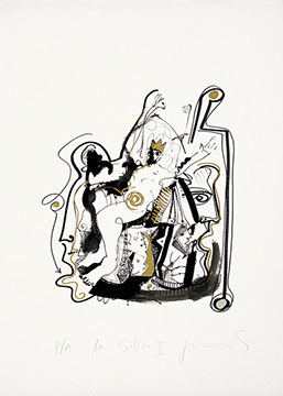 SARAMAGO HOMENAJE La decadente silla II Serigrafía, tinta china negra,dorada y/o plateada sobre papel 70 x 50 cm