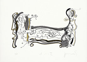 SARAMAGO HOMENAJE Instante de amor II Serigrafía, tinta china negra,dorada y/o plateada sobre papel 70 x 50 cm