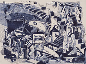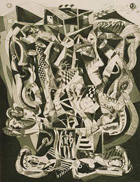 SARAMAGO HOMENAJE Atrapado II Serigrafía, tinta china negra,dorada y/o plateada sobre papel 70 x 50 cm
