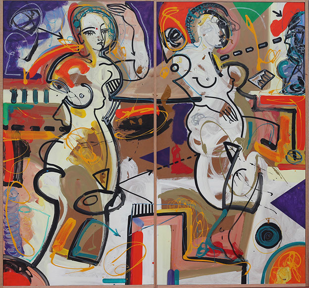 TRANSMUTACIÓN Entre líneas la belleza I y II (díptico) Mixta sobre madera 91 x 214 cm